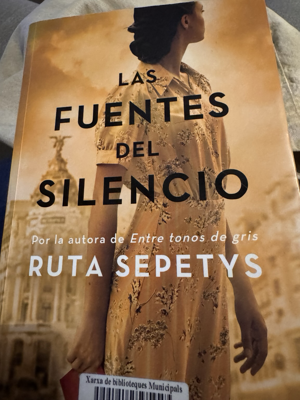 Mi último libro de 2025 fue “Las fuentes del silencio” por Ruta Sepetys. Es ficción histórica, tratándose la historia triste y poco hablado (al menos en los EE.UU.) de cómo los EE.UU. colaboraban con Franco y su dictadura horrorosa. También trata el fenómeno horrible que ocurrió durante del franquismo de robarles a los bebés y decirles a los padres que el bebé murió en el parto.