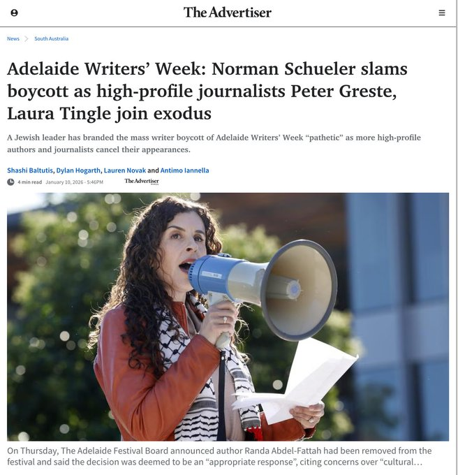 At the beginning of the week, Schueler stamped his little zio foot and demanded a Palestinian-Australian author be removed from the programme at the Adelaide Writers Festival.
