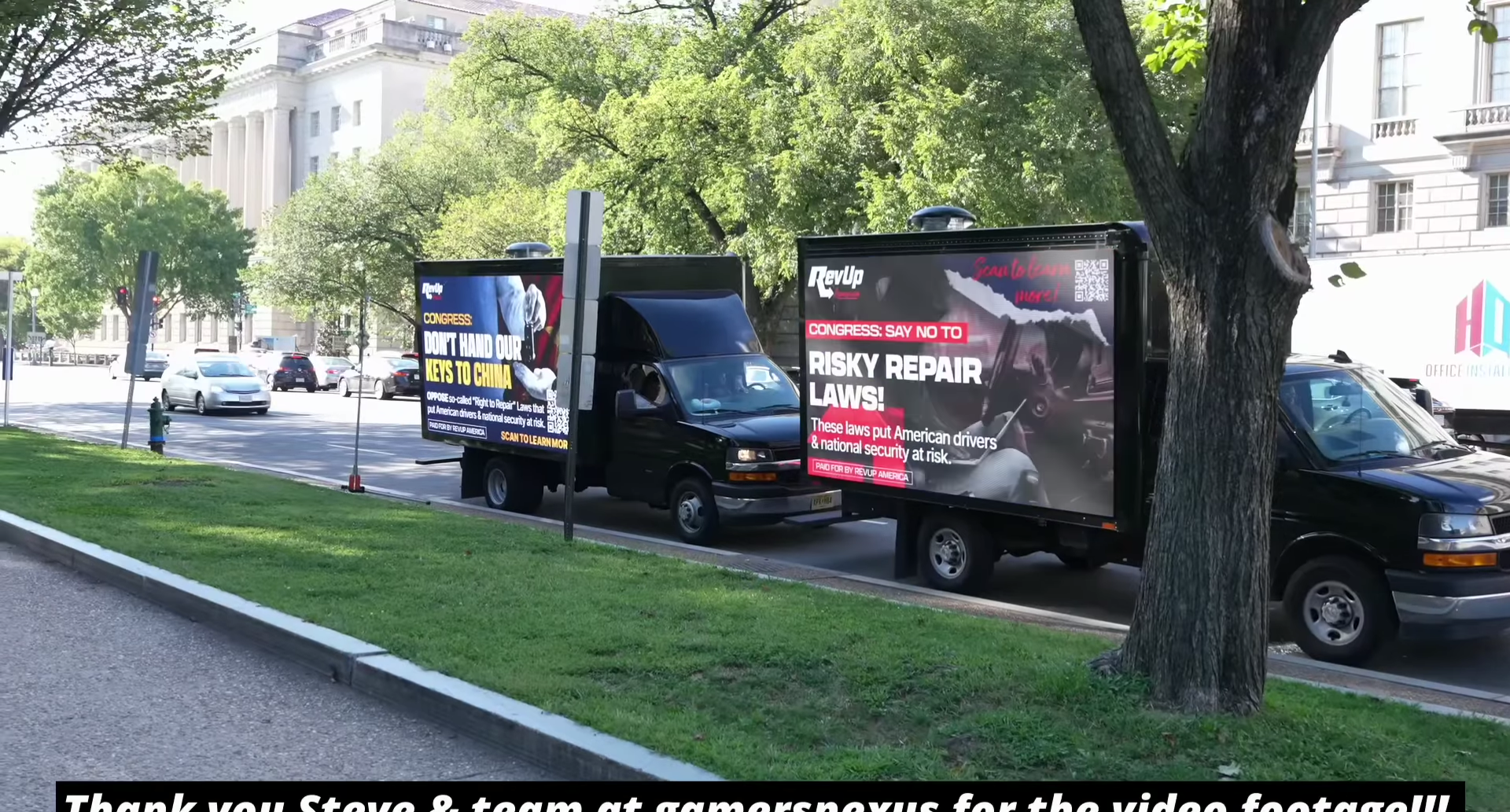 Hired by RevUp, these trucks are there to convince your representative that independent repair is a bad thing.