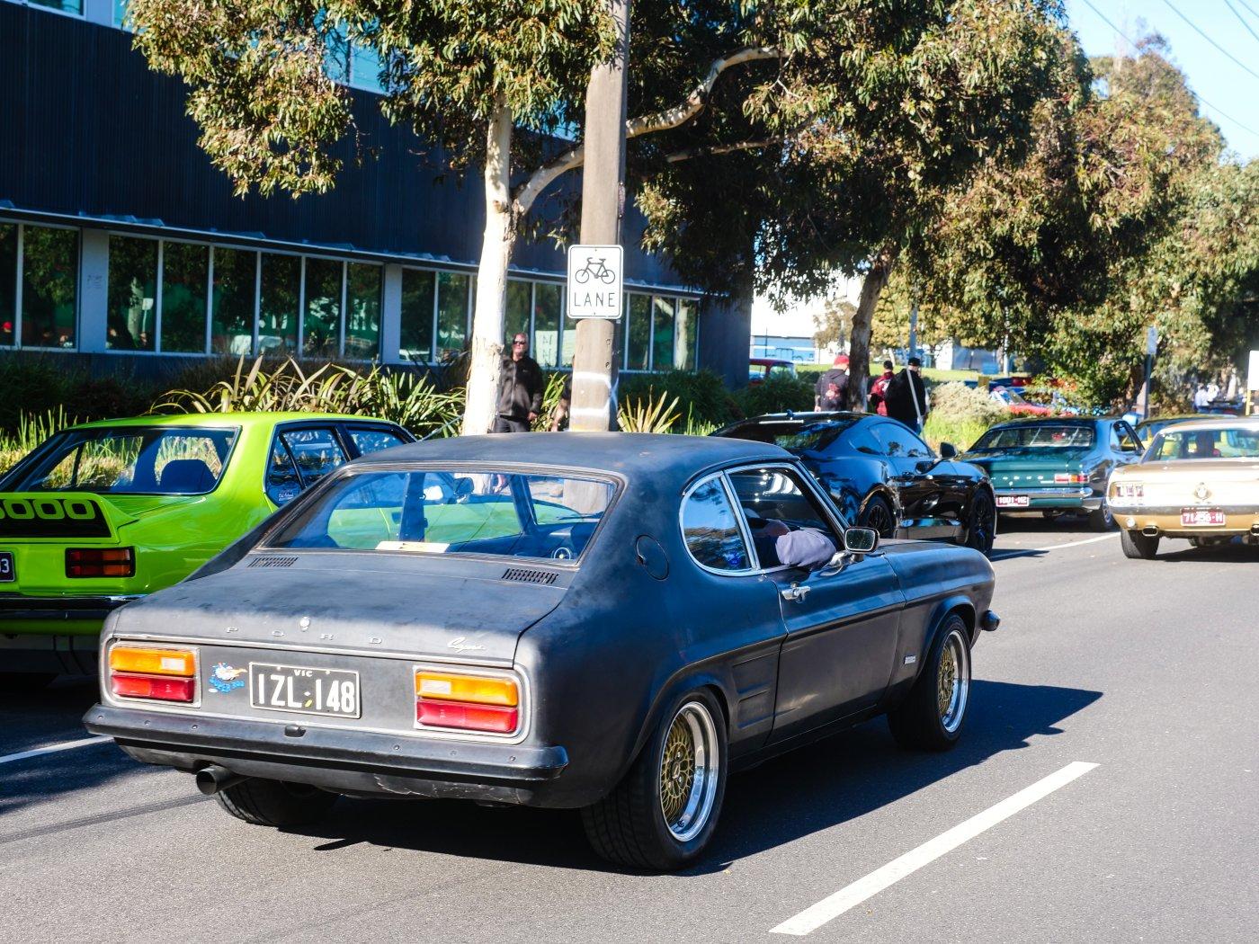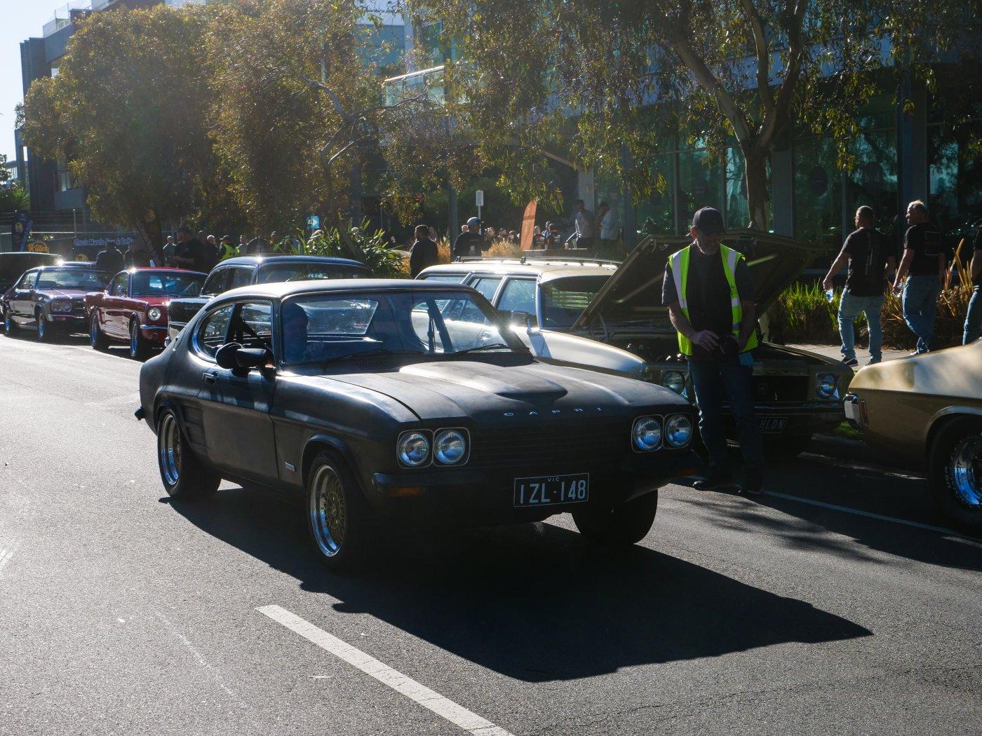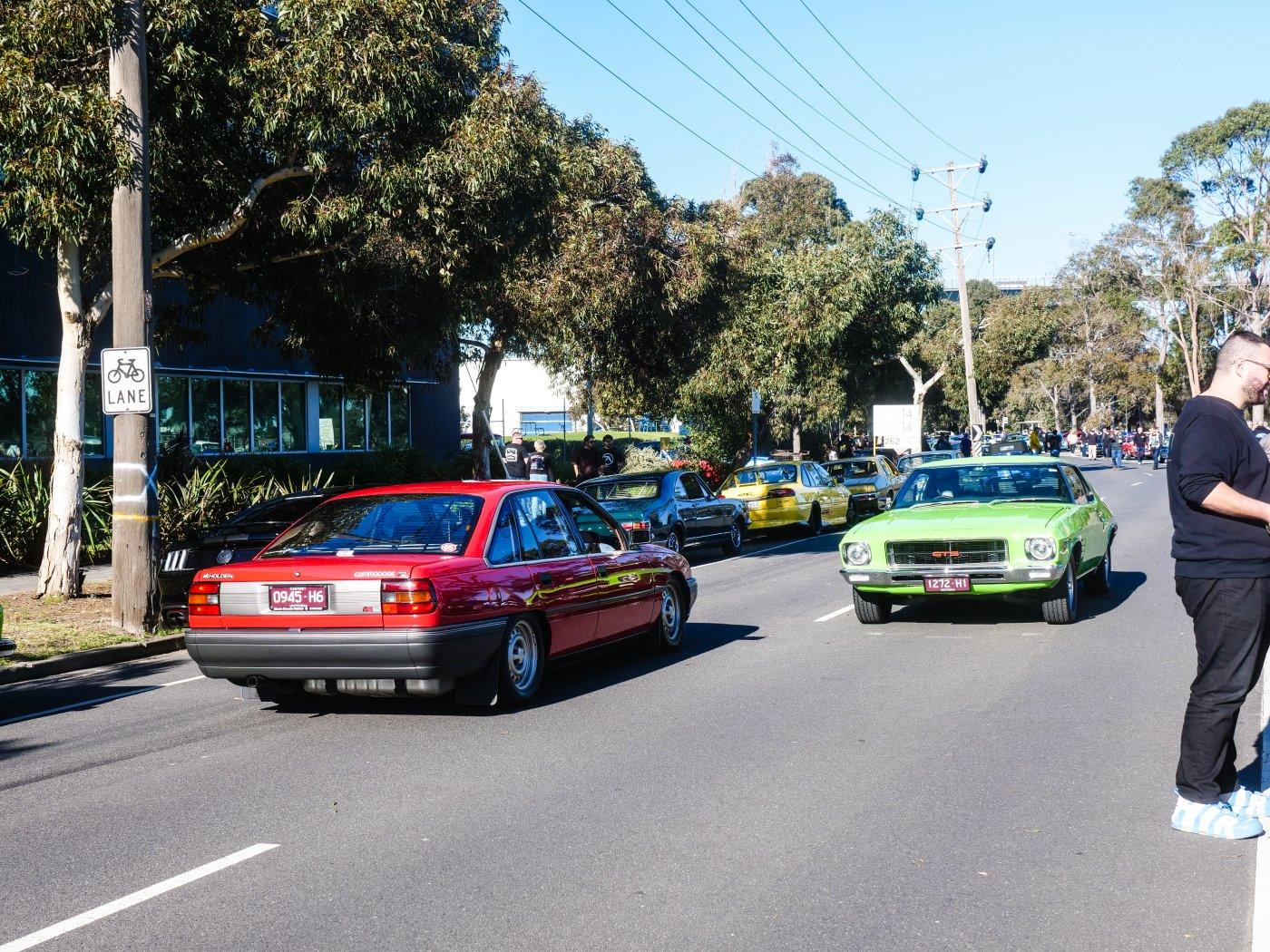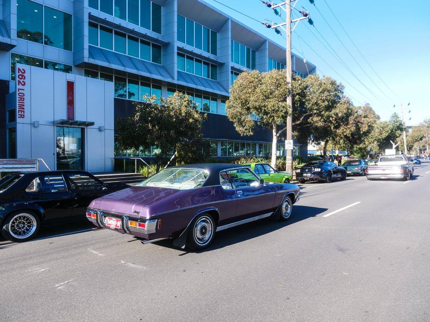 This is in Port Melbourne, right near the docks. Packed with trucks during the week, and packed with vintage cars on this day, in every direction.