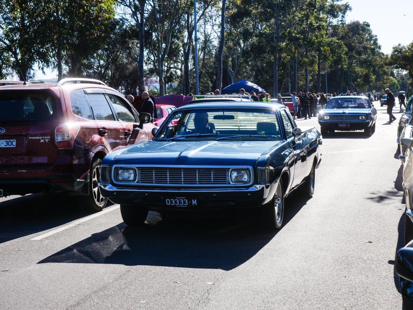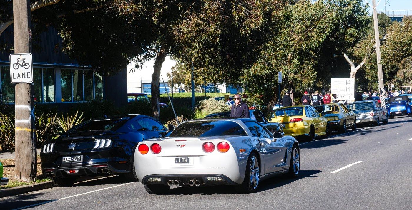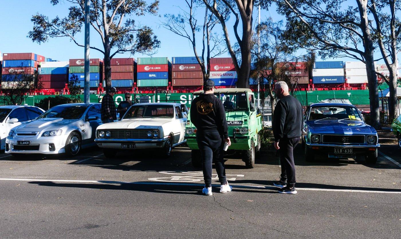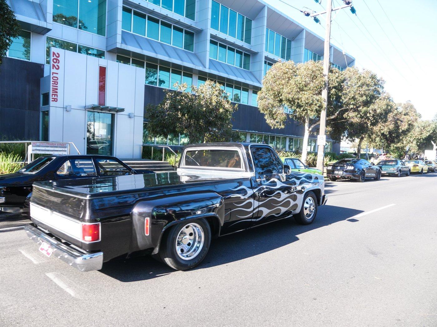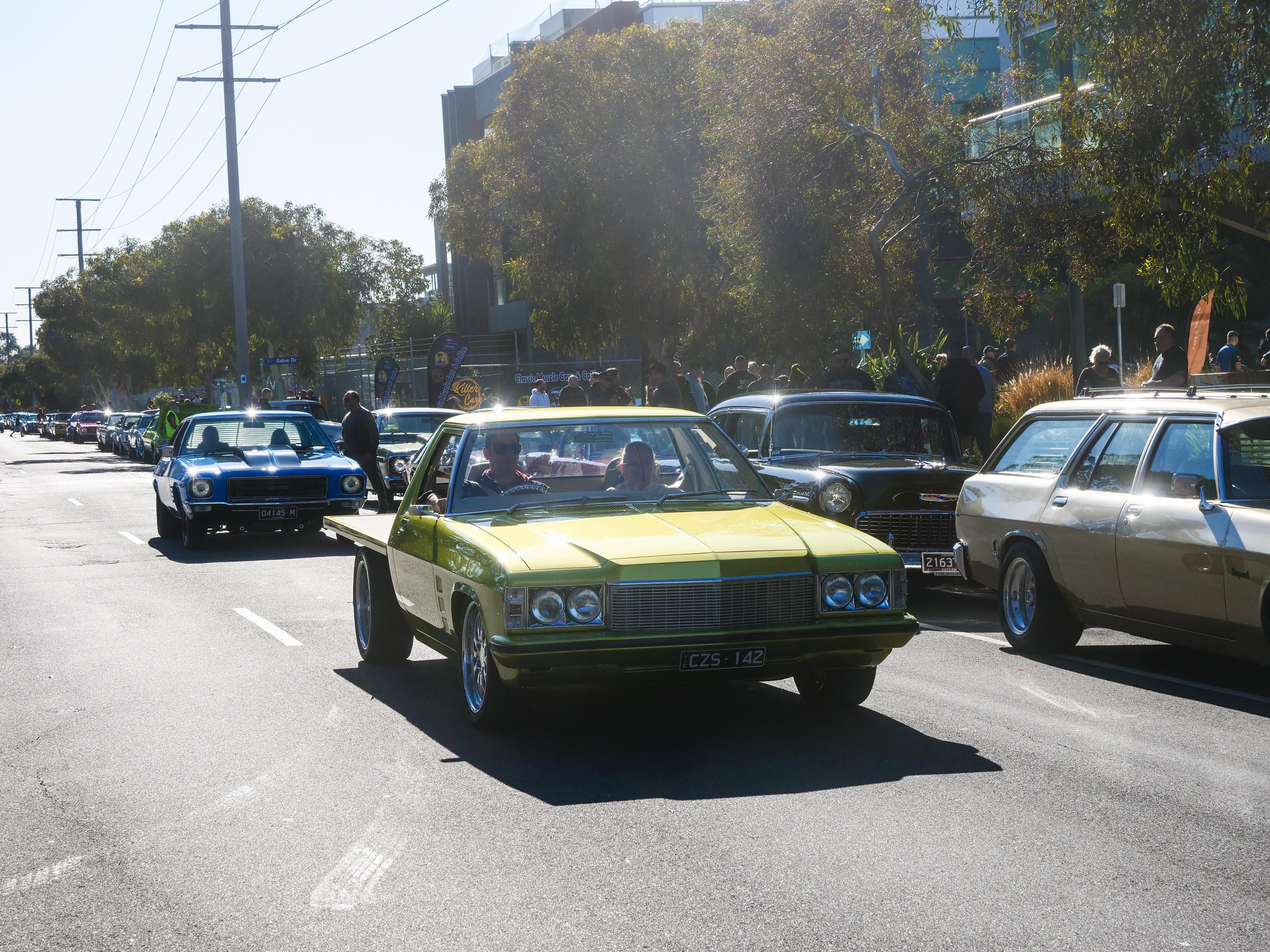 This is in Port Melbourne, right near the docks. Packed with trucks during the week, and packed with vintage cars on this day, in every direction.