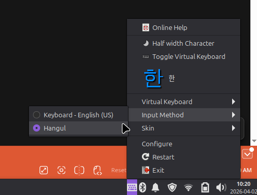 Keyboard shortcut keys don't work, so I click with the mouse on the keyboard menu and switch between layouts (see picture)