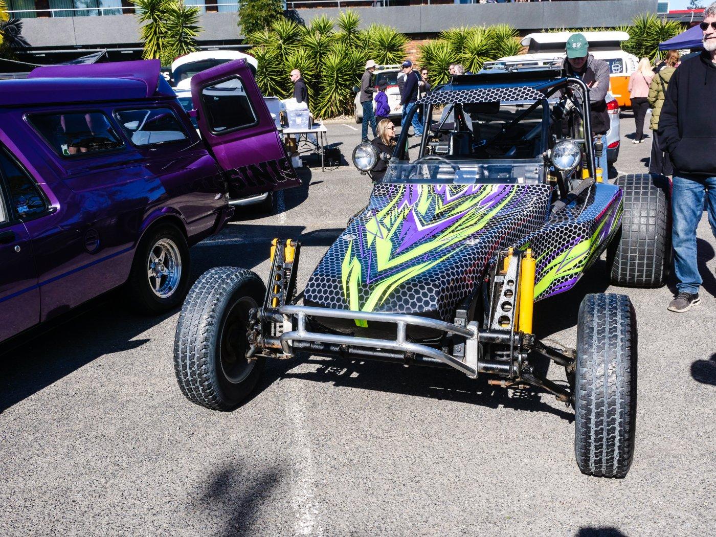 More randomness from the Dream Cruise: a sedan with “Cheater” spray-painted along the side? Sure. A 14-foot-tall motorized shopping cart? Why not!