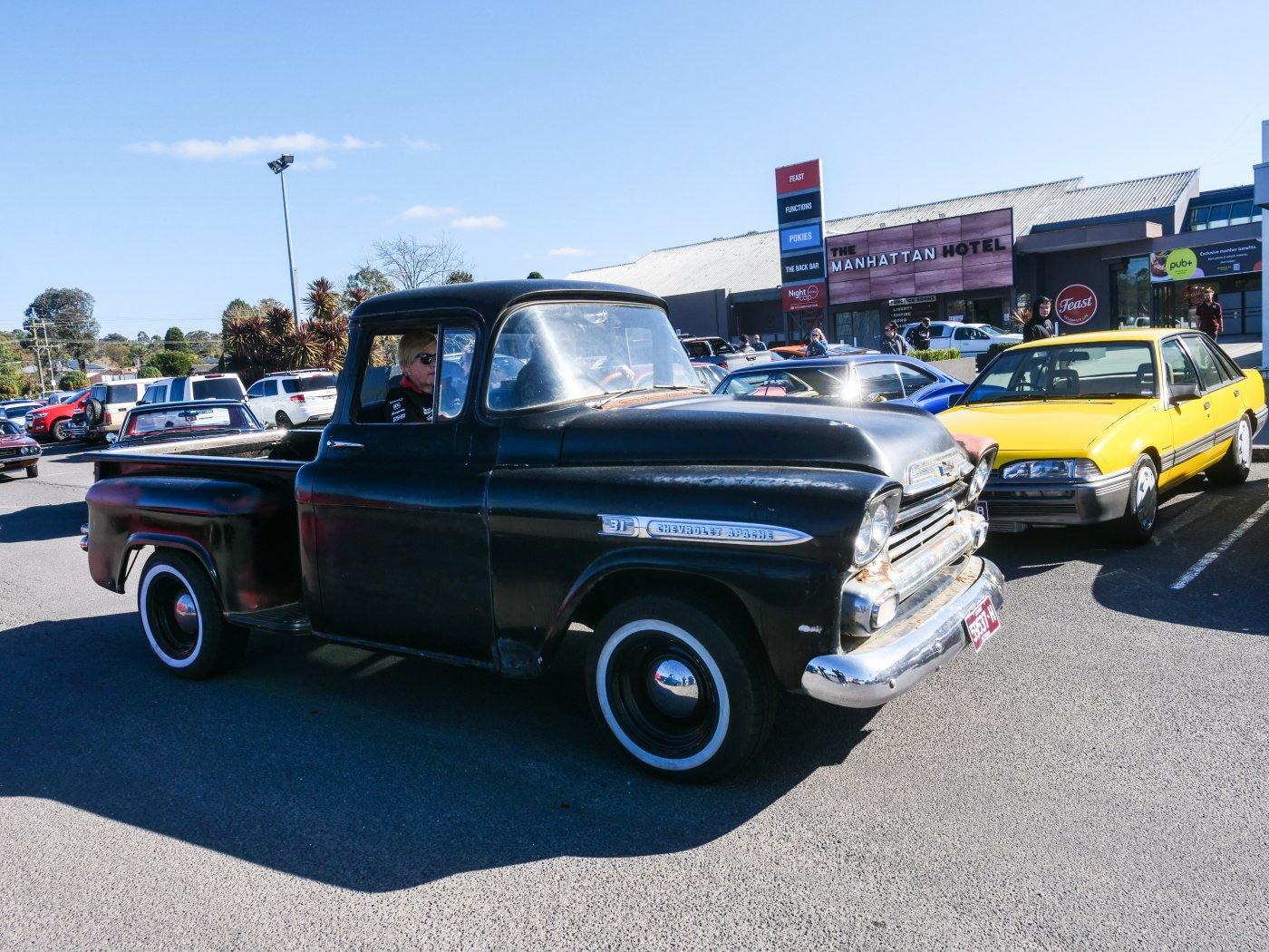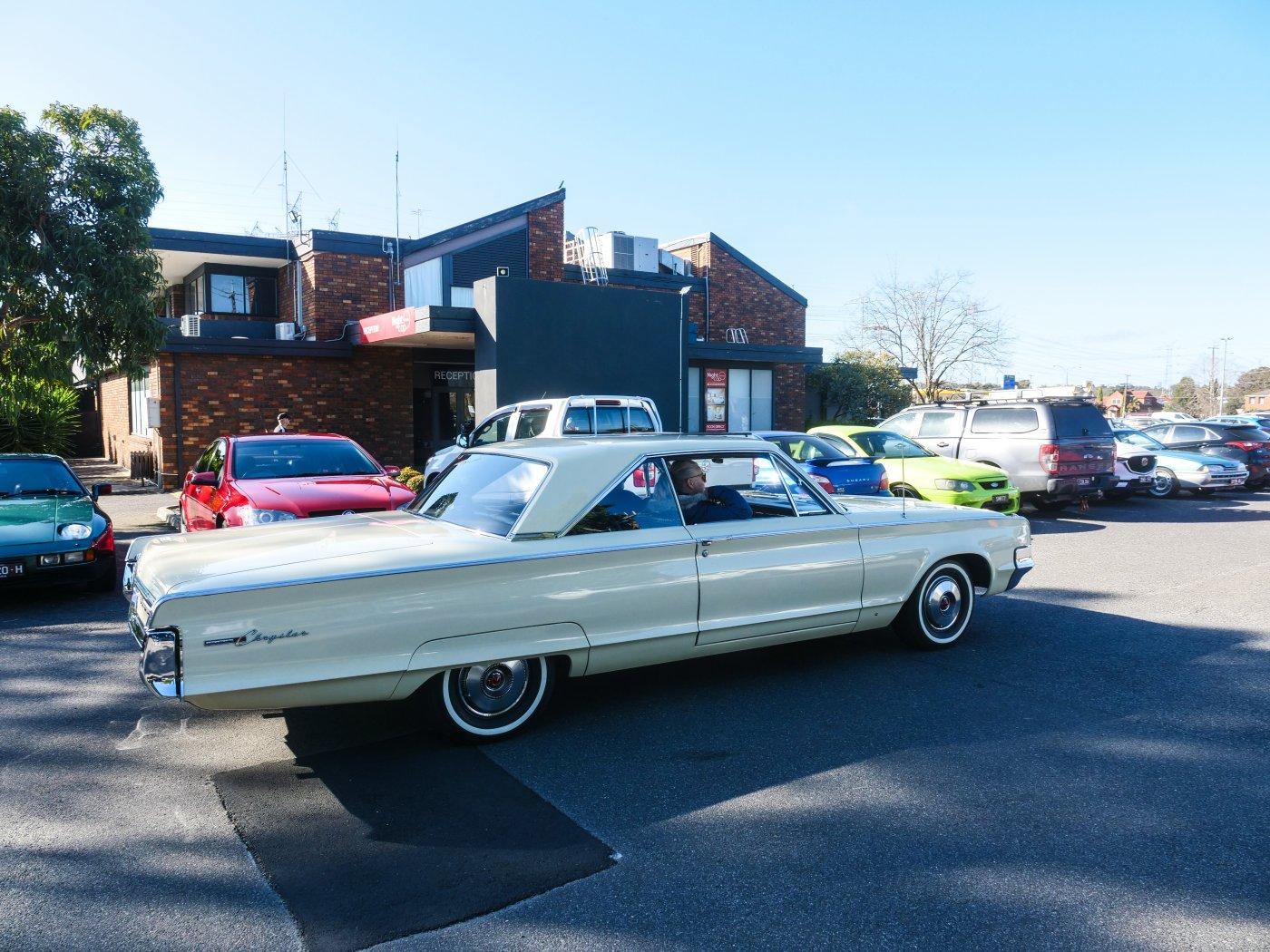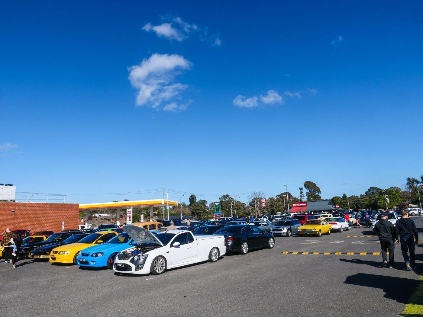 The car park wraps around the pub/motel. And it was jammed everywhere you looked, with more cars cruising around trying to find a spot.