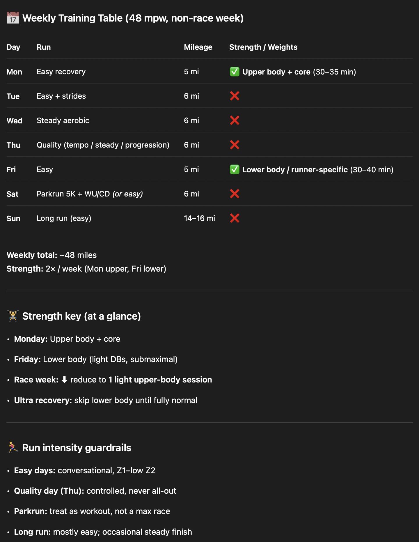* Non-running: more focus on upper body/strength/weight lifting