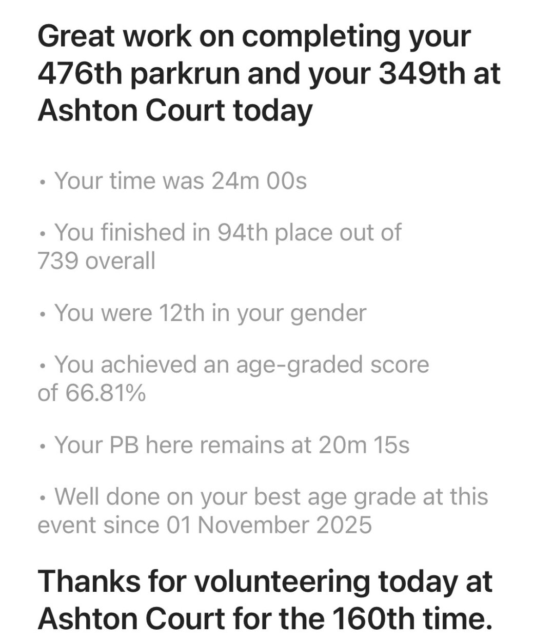 499 parkrunners, 25 hardy volunteers, 1 Paralympic legend and- miraculously - no frost on the paths. That’s a happy day in the life of a #parkrun run director.