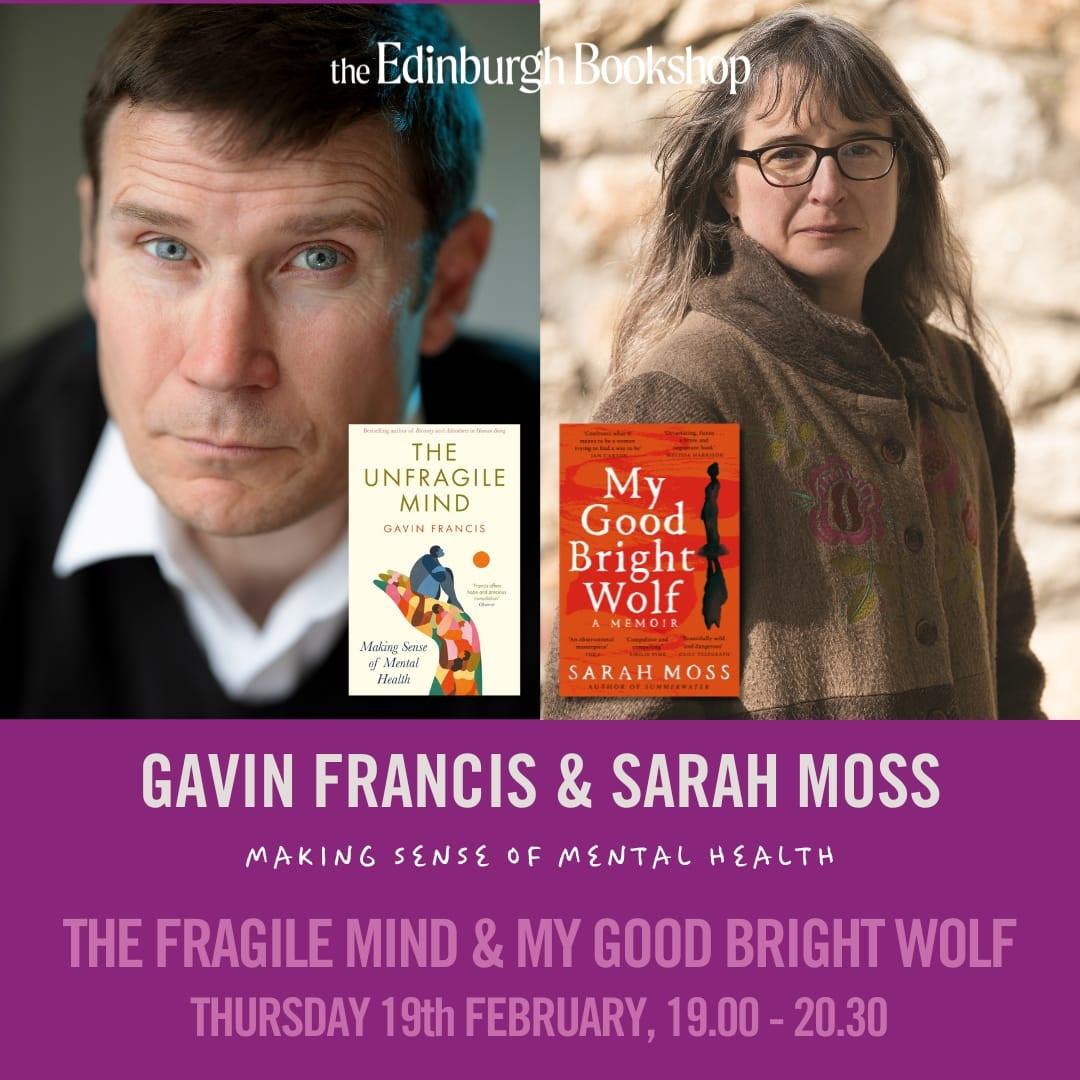 #books #Livres #Edinburgh #Edimbourg #Author #Auteur #AuthorEvents #bookshops #librairies #bookstodon #BookEvents #GavinFrancis #SarahMoss #MentalHealth #TheUnfragileMind #MyGoodBrightWolf