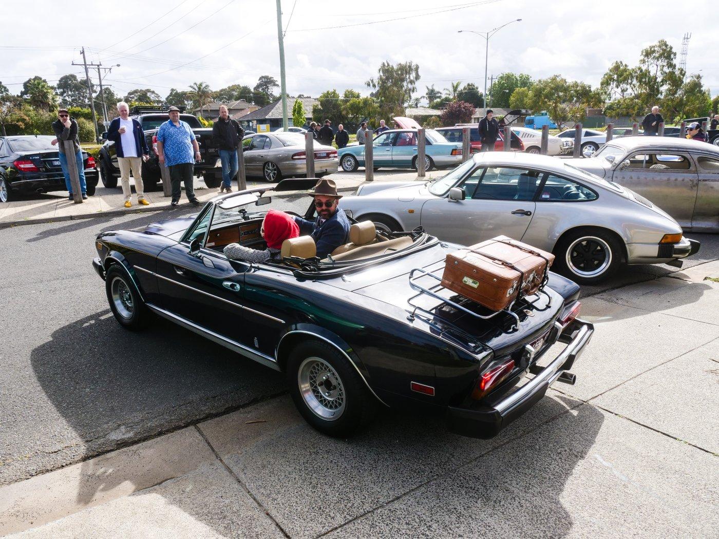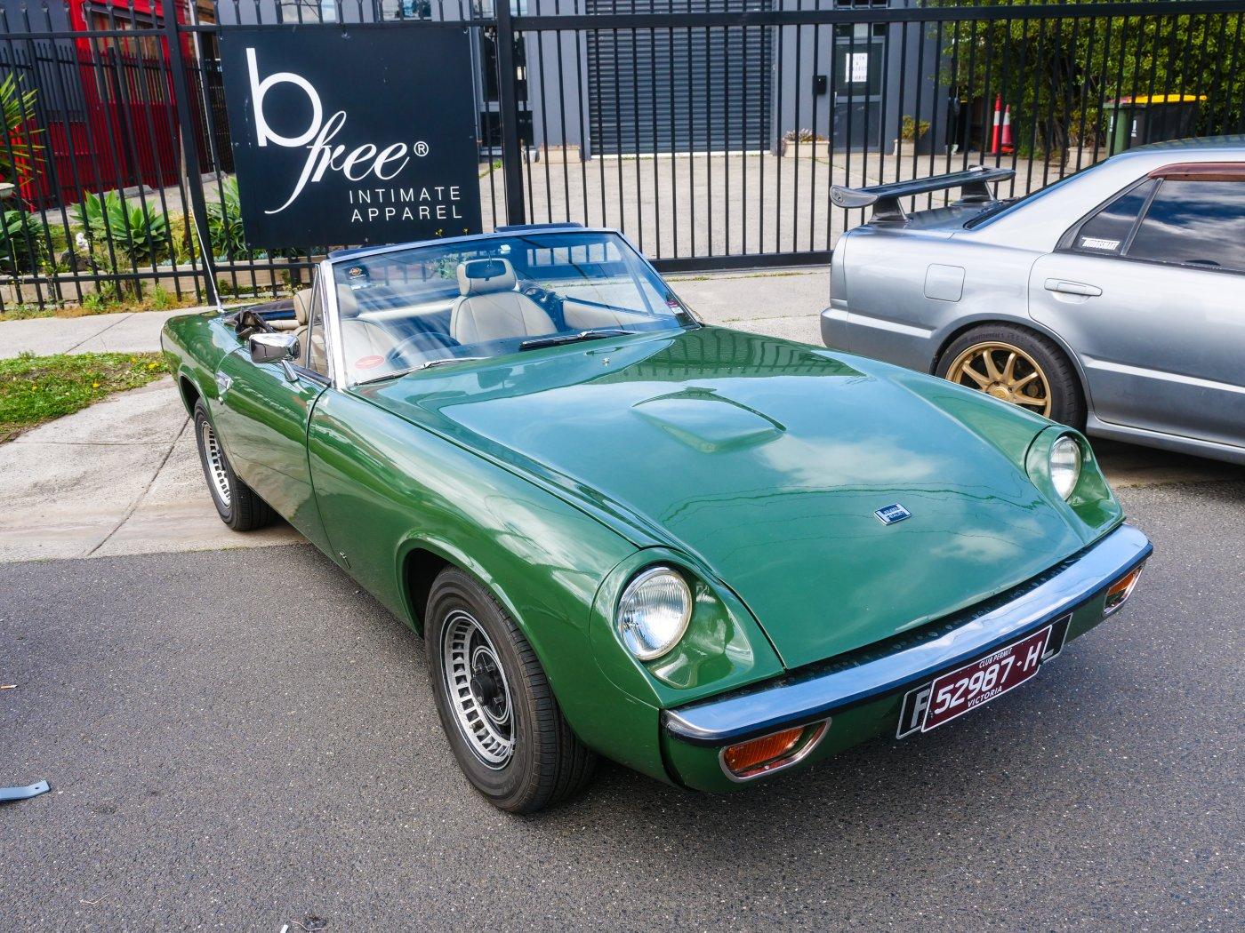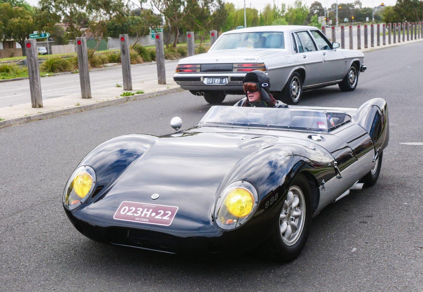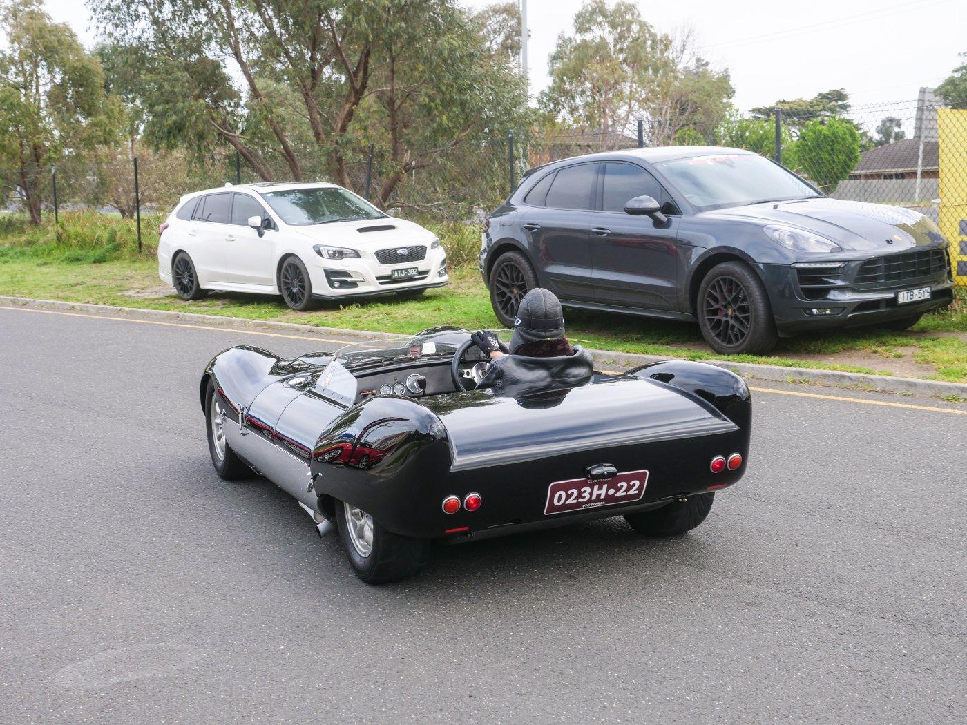 Outside people were trickling in. It was a chilly morning, I don't blame this driver for rugging up in this Elfin.