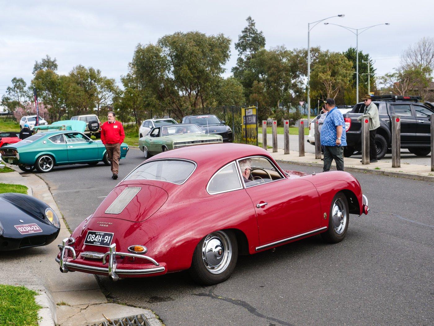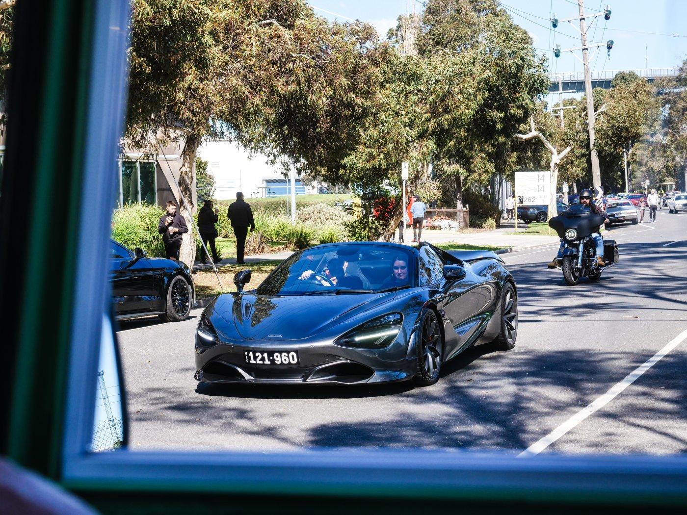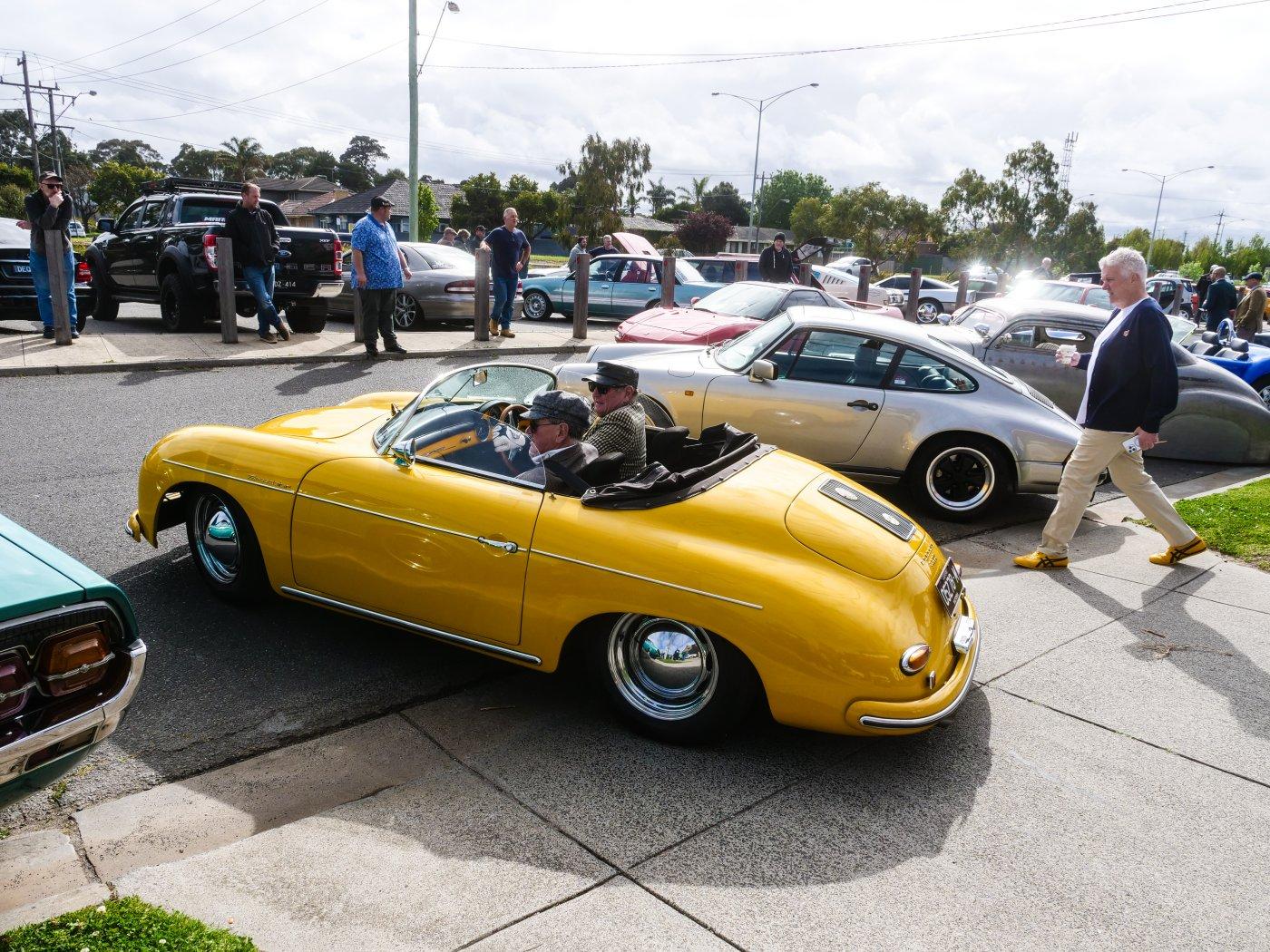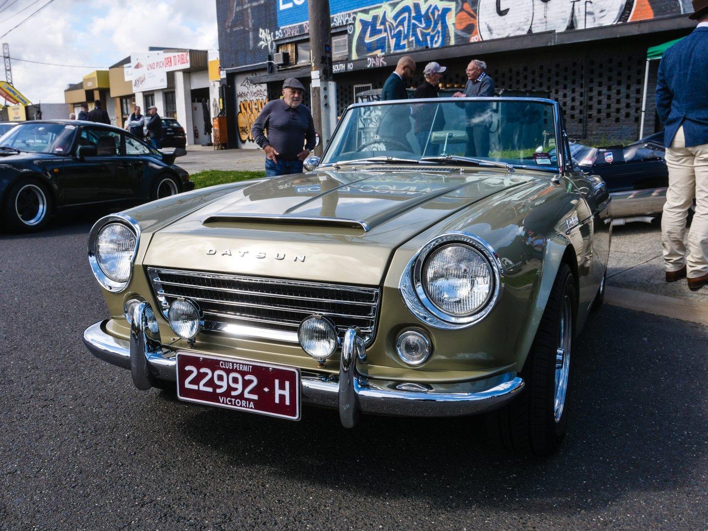 Outside people were trickling in. It was a chilly morning, I don't blame this driver for rugging up in this Elfin.
