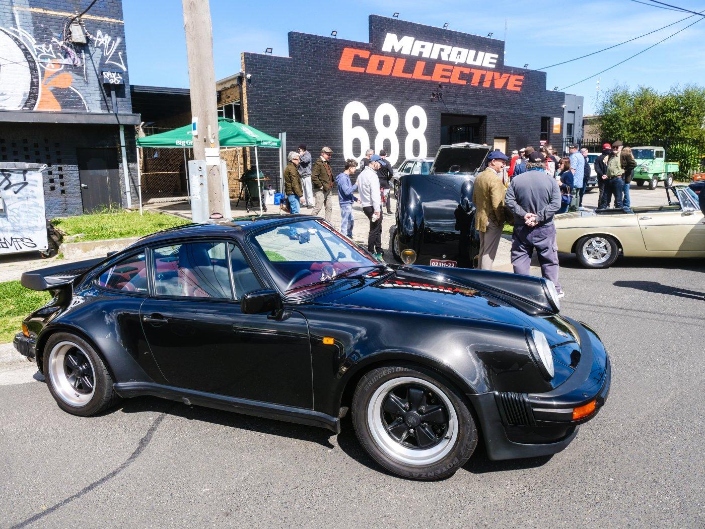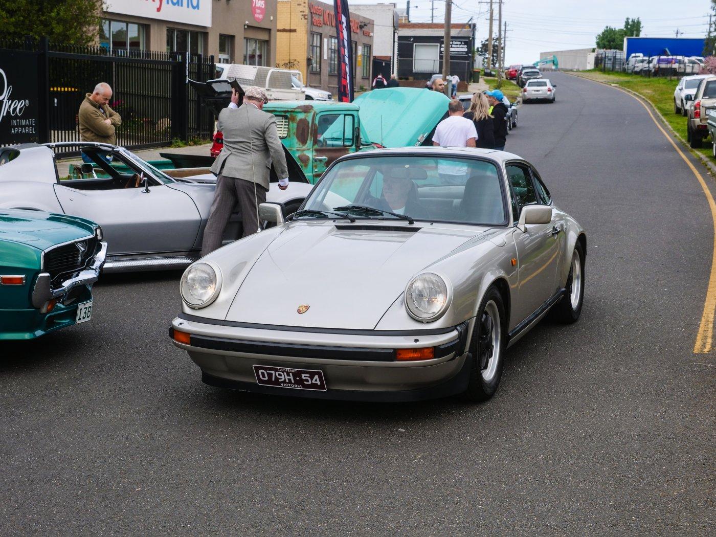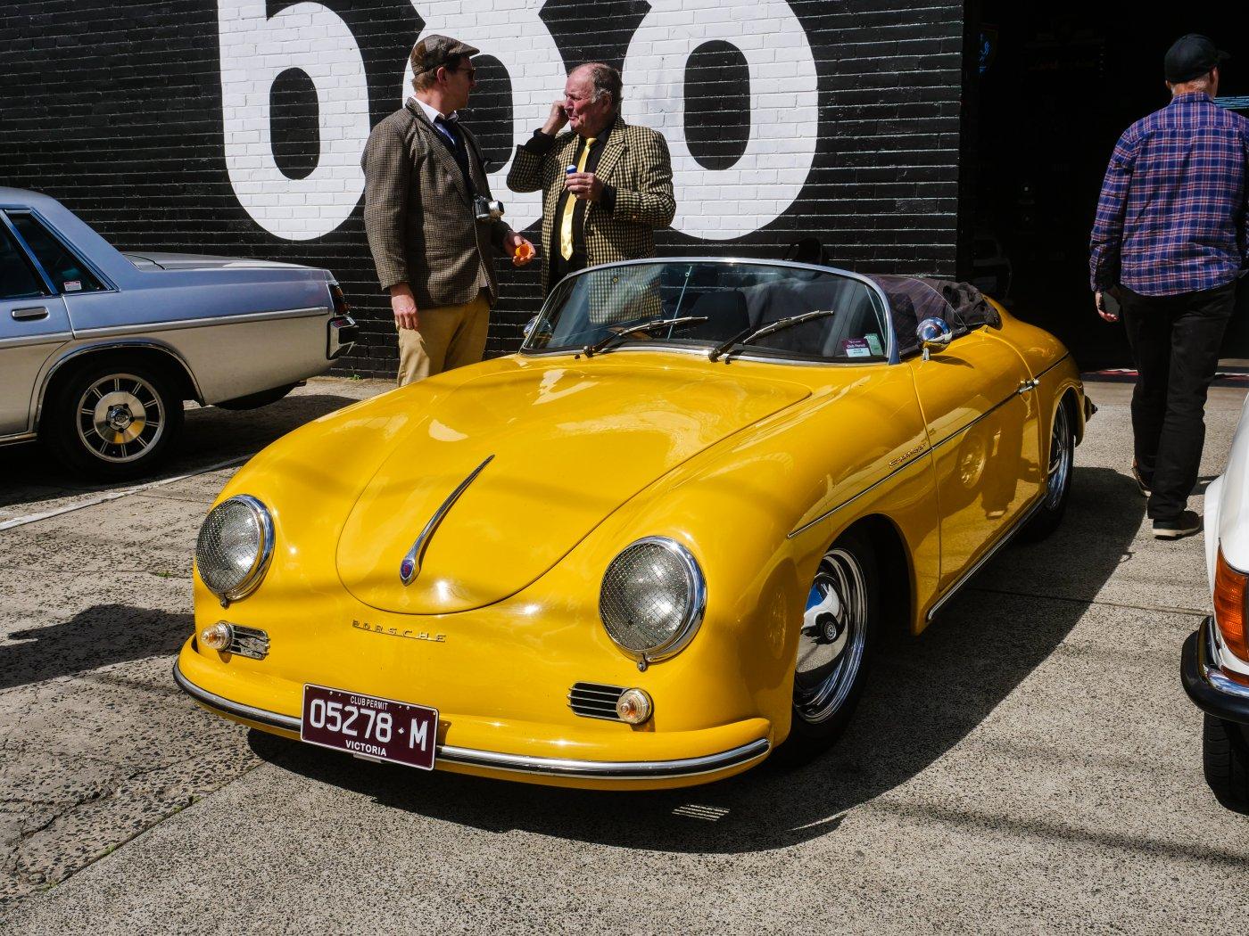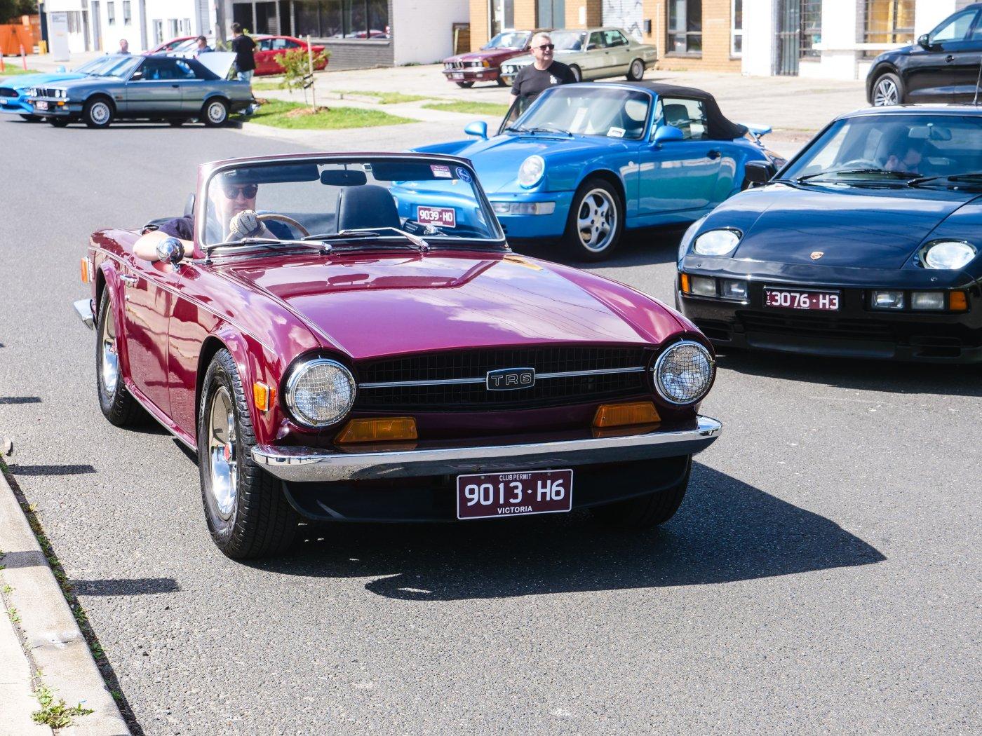 Outside people were trickling in. It was a chilly morning, I don't blame this driver for rugging up in this Elfin.