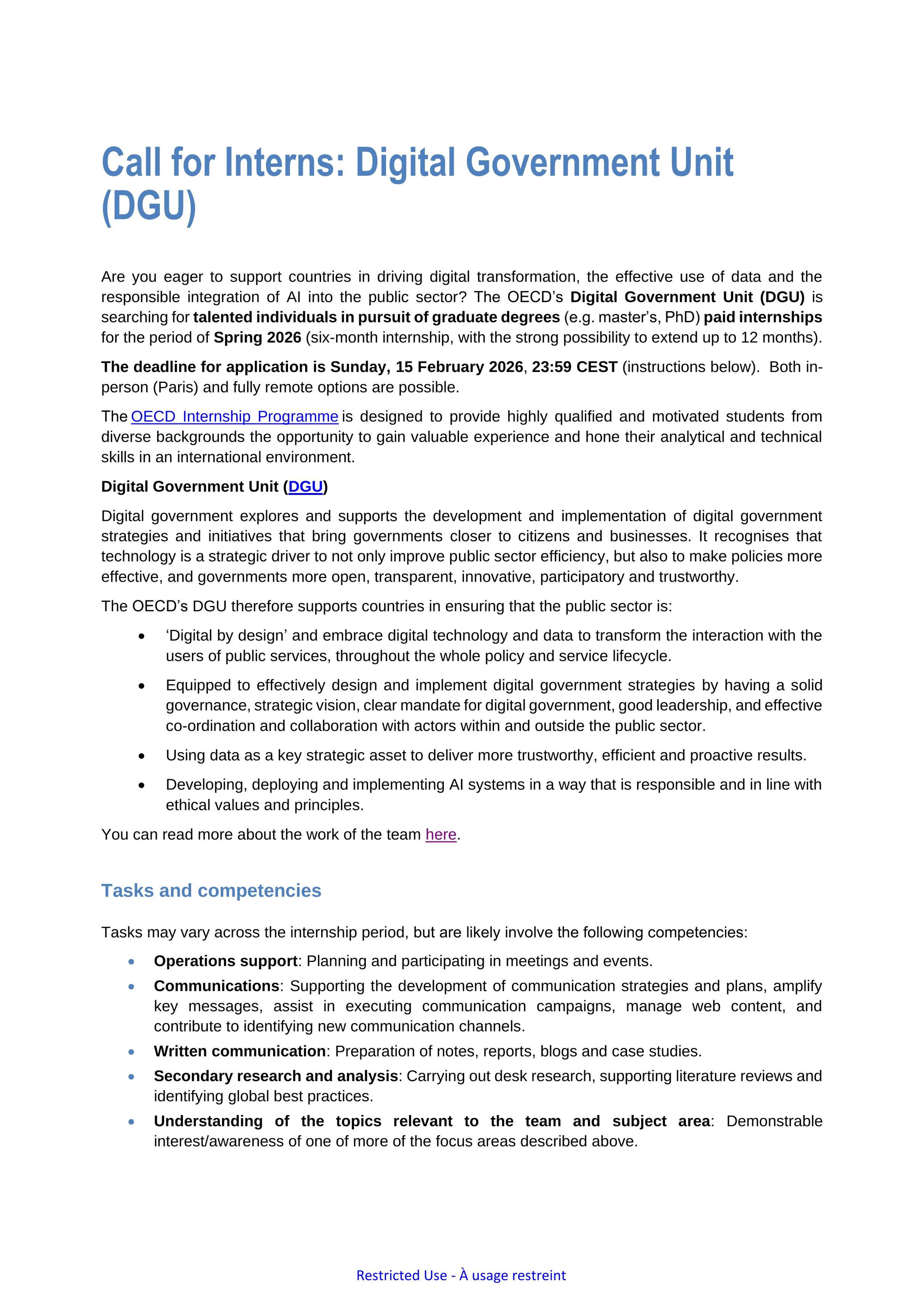 My team at the OECD is looking for #interns to work on topics related to digital transformation in the public sector.