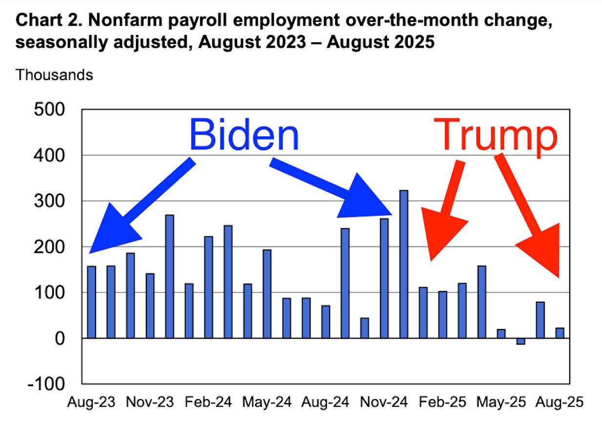 “Today we learned the US economy has lost jobs for the first time since 2020. In other words, we haven’t seen jobs news this bad since - well, since the last time Trump was in charge.”