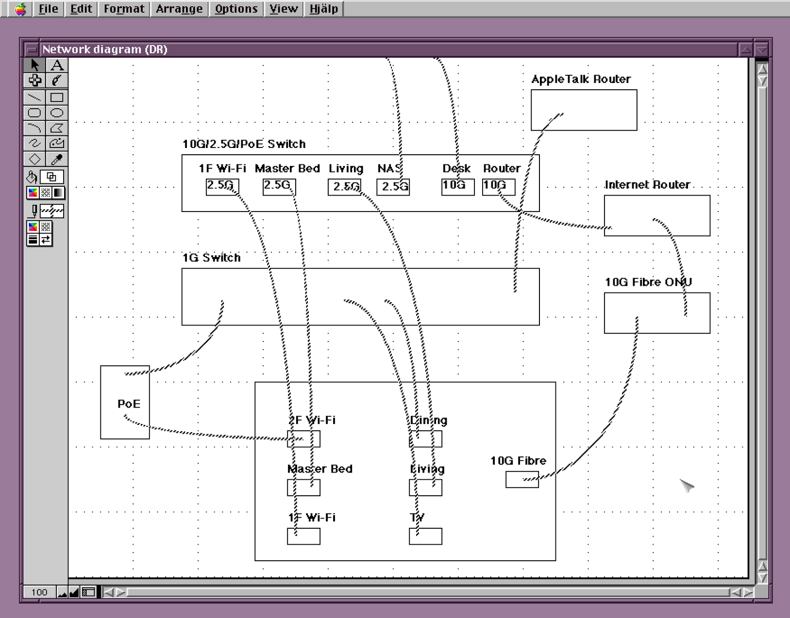 Made a wiring diagram before labeling all my new fancy uniform white ethernet cables I got to replace the spaghetti of random lengths of colored wires