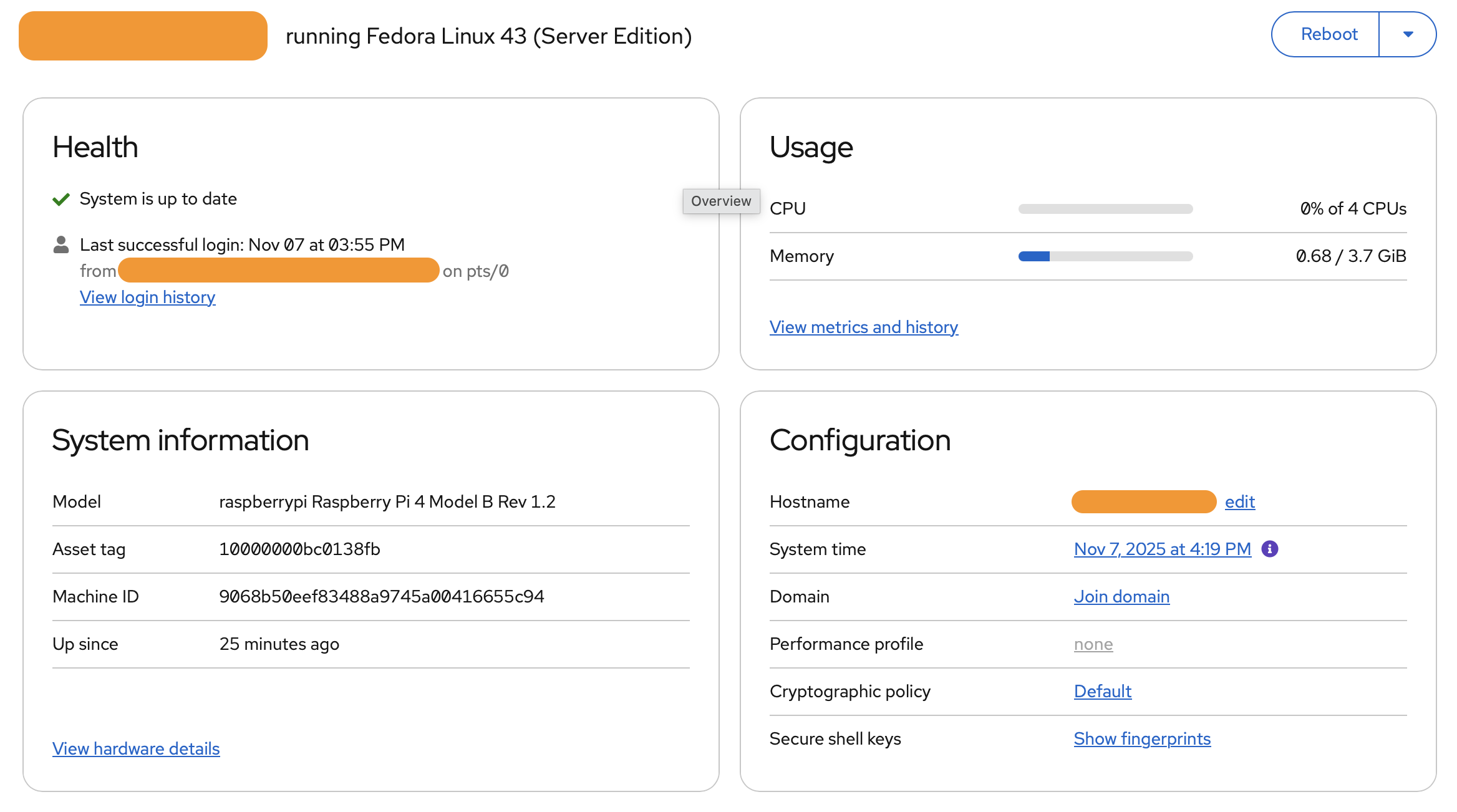 Upgraded my Raspberry Pi 4B from Fedora 42 to Fedora 43 using the offline upgrade process. I documented what worked for me as a gist at https://codeberg.org/jwildeboer/gists/src/branch/main/2025/20251107UpgradeToFedora43Raspi4.md and couldn't have done it without the little tip from @krist — Thx, Krist!